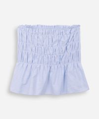 Blusa juvenil confeccionada em algodão. Possui shape evasê, decote reto, design sem alças, detalhes com lastex no busto proporcionando efeito franzido e estampa vichy.