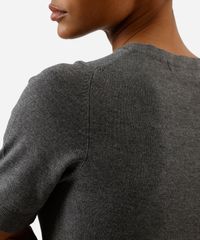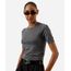 blusa manga curta long cropped em tricot liso cinza