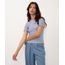 Blusa confeccionada em poliéster com toque leve. A peça possui modelo com textura, decote redondo, manga curta com detalhe de frufru nas barras e acabamento pespontado.