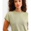 Blusa muscle tee feminina confeccionada em tricot leve de viscose e poliamida. A peça tem a modelagem e construção reta e o caimento é confortavelmente solto ao corpo. O modelo tem decote redondo em tecido com textura canelada e mangas curtas. Detalhe de acabamento canelado no decote, cavas e barra.