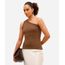 Blusa feminina confeccionada em malha canelada de algodão. A peça tem a modelagem e construção reta e o caimento é confortavelmente justo ao corpo. O modelo tem decote ombro único e acabamento em viés na cava.