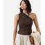 blusa ombro único feminina com pregas folhagens texturizada marrom