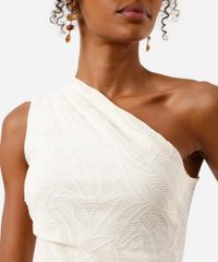 blusa ombro único feminina com pregas folhagens texturizada off white