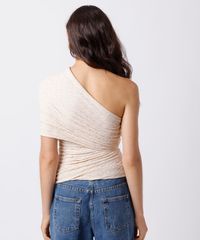BLUSA OMBRO ÚNICO FEMININA DE RENDA FRANZIDA FLORAL MINDSET