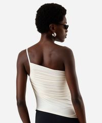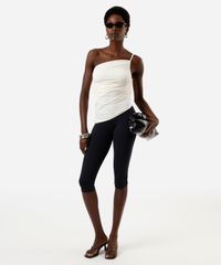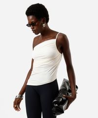 blusa ombro único feminina franzida assimétrica off white
