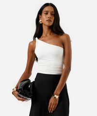 blusa ombro único feminina franzida off white