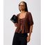 BLUSA PEPLUM FEMININA COM LINHO MANGA BUFANTE MINDSET