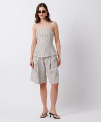 blusa peplum feminina com linho sem alça listrada mindset off white