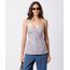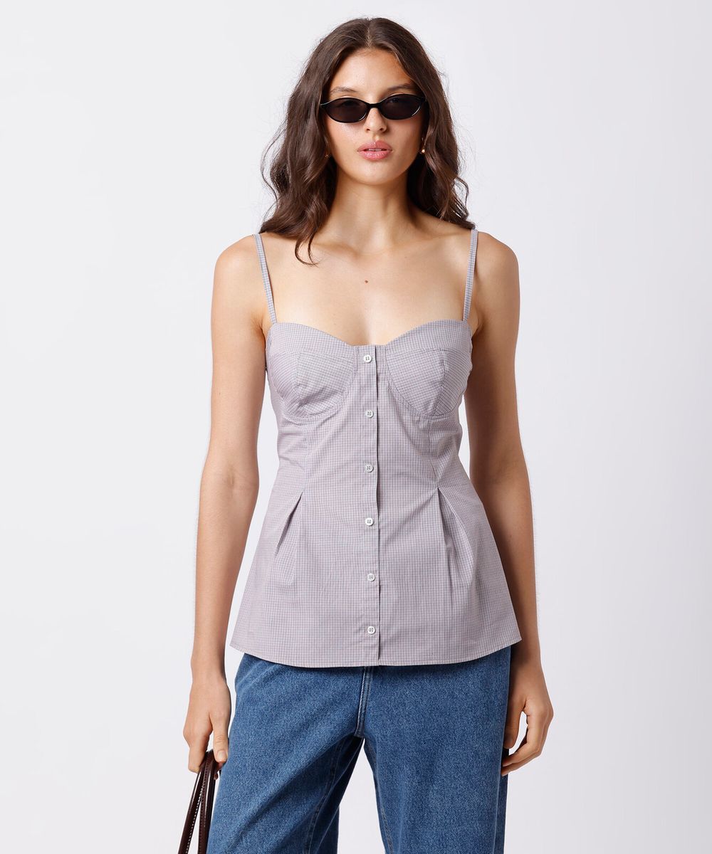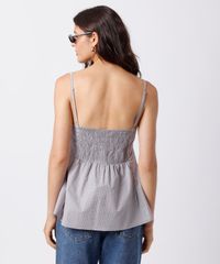 blusa peplum feminina de algodão alça fina xadrez mindset marrom