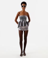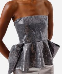 blusa peplum feminina de paetê sem alça prateada