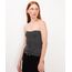 Blusa confeccionada em malha de tricot. Modelo com caimento reto, levemente ajustado ao corpo, decote reto, sem alça, detalhe frontal de aplicação de botões decorativos e acabamento pespontado.