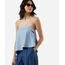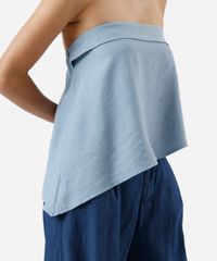 Blusa feminina confeccionada em tecido plano com viscose. A peça tem modelagem reta, caimento solto ao corpo e barra assimétrica. O modelo tem decote quadrado e não possui alças. Detalhe de acabamento pespontado na barra.
