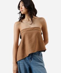 blusa sem alça feminina com viscose assimétrica marrom