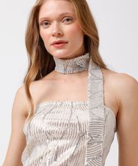 BLUSA SEM ALÇA FINA FEMININA DE PAETÊ COM LENÇO MINDSET
