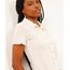 Blusa confeccionada em malha com textura. Modelo com caimento ajustado, gola esporte, mangas curtas, fechamento por botões e barra fru fru.