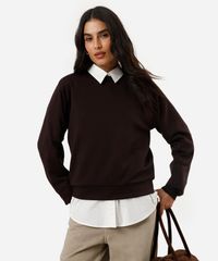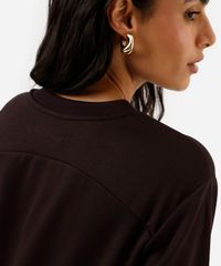 blusão básico alongado feminino de moletom com recorte marrom