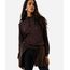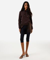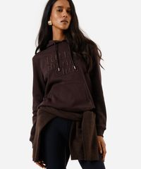 blusão básico feminino de moletom com capuz e bordado marrom