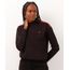 • Gola alta canelada que confere um visual sofisticado e protege do frio.