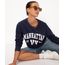 Blusão de moletom leve com parte interna felpada. Modelo com caimento reto, decote redondo, mangas longas com punho, parte frotnal com estampa de escrita Manhattan e barra canelada.