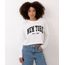 Blusão confeccionado em moletom leve com toque macio. Modelo com caimento reto, decote redondo canelado, mangas longas com punho canelado, estampa frontal de escrita new york e barra pespontada.