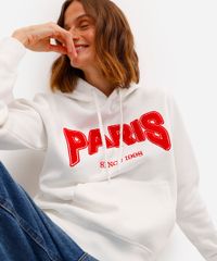 blusão feminino de moletom felpado bordado paris com capuz off white