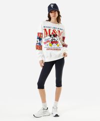 Blusão feminino confeccionado em moletom com estampa localizada do "Mickey e Minnie" na parte frontal e mangas. A peça tem a modelagem oversized e o caimento é confortavelmente solto ao corpo. O modelo tem gola redonda e as mangas são longas com acabamento canelado nos punhos e na barra. Composição: 63% algodão 37% poliéster Modelo veste: P/38 Medidas da modelo: Altura: 1,73 m Busto: 80 cm Cintura: 61 cm Quadril: 90 cm Instruções de lavagem: - Temperatura até 40º - Não alvejar - Não secar em secadora - Secar na vertical - Passar em temperatura mínima - Não lavar a seco - Limpar a úmido