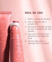 Espalhe com a ponta dos dedos ou use o pincel. Feche o aplicador após o uso. Rosa Coral. Em caso de irritabilidade suspenda o uso e procure auxílio médico.
