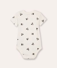 Este body infantil é a escolha perfeita para vestir seu bebê com muito conforto e um toque de magia. Confeccionado em uma malha de algodão macia e respirável, ele garante o bem-estar dos pequenos durante todo o dia. A estampa divertida do Mickey Mouse sobre um fundo listrado torna a peça ainda mais charmosa, ideal para compor looks fofos e práticos para o seu bebê.