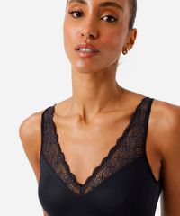 Body confeccionado em microfibra. A peça possui caimento ajustado ao corpo, decote v em renda, alças finas ajustáveis, forro e acabamento pespontado. Composição: 76% poliamida 24% elastano Modelo veste: P/38 Medidas da modelo: Altura: 1,73m Busto: 86cm Cintura: 70cm Quadril: 101cm. Instruções de lavagem: - Lavagem manual - Não alvejar - Não secar em secadora - Secar na horizontal - Não passar - Não lavar à seco - Não limpar à úmido