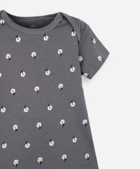 body infantil de algodão florzinha cinza