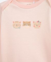 • Estampa frontal com desenhos de gatinhos e padronagem listrada que adicionam um toque lúdico.