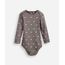 body infantil de algodão manga longa floral cinza