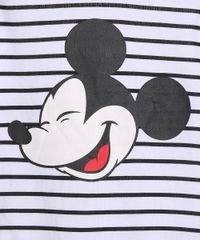 • Estampa frontal do Mickey sobre fundo listrado, um clássico que nunca sai de moda.