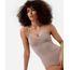 Body modelador feminino confeccionado em malha de poliamida. A peça tem caimento confortavelmente ajustado ao corpo. O modelo tem decote V com franzido centralizado e alça finas com abertura por encaixe.