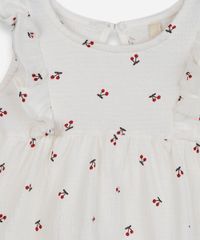 body vestido infantil com algodão e babados cerejas texturizado off white