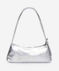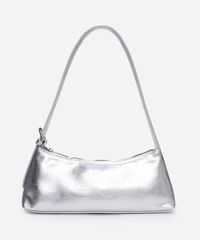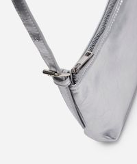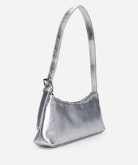 Bolsa baguete feminina desenvolvida em material sintético resistente. O modelo tem formato retangular, forro em tecido plano, fechamento por zíper e alça de ombro com fivela ajustável.