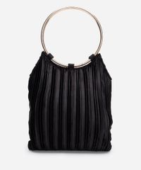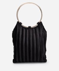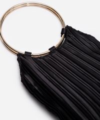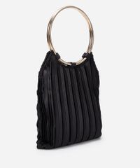Bolsa clutch desenvolvida em tecido plano plissado com toque acetinado. O modelo tem formato retangular e alças de argolas metálicas. Possui forro em tecido plano, bolso interno e fechamento por botão magnético.
