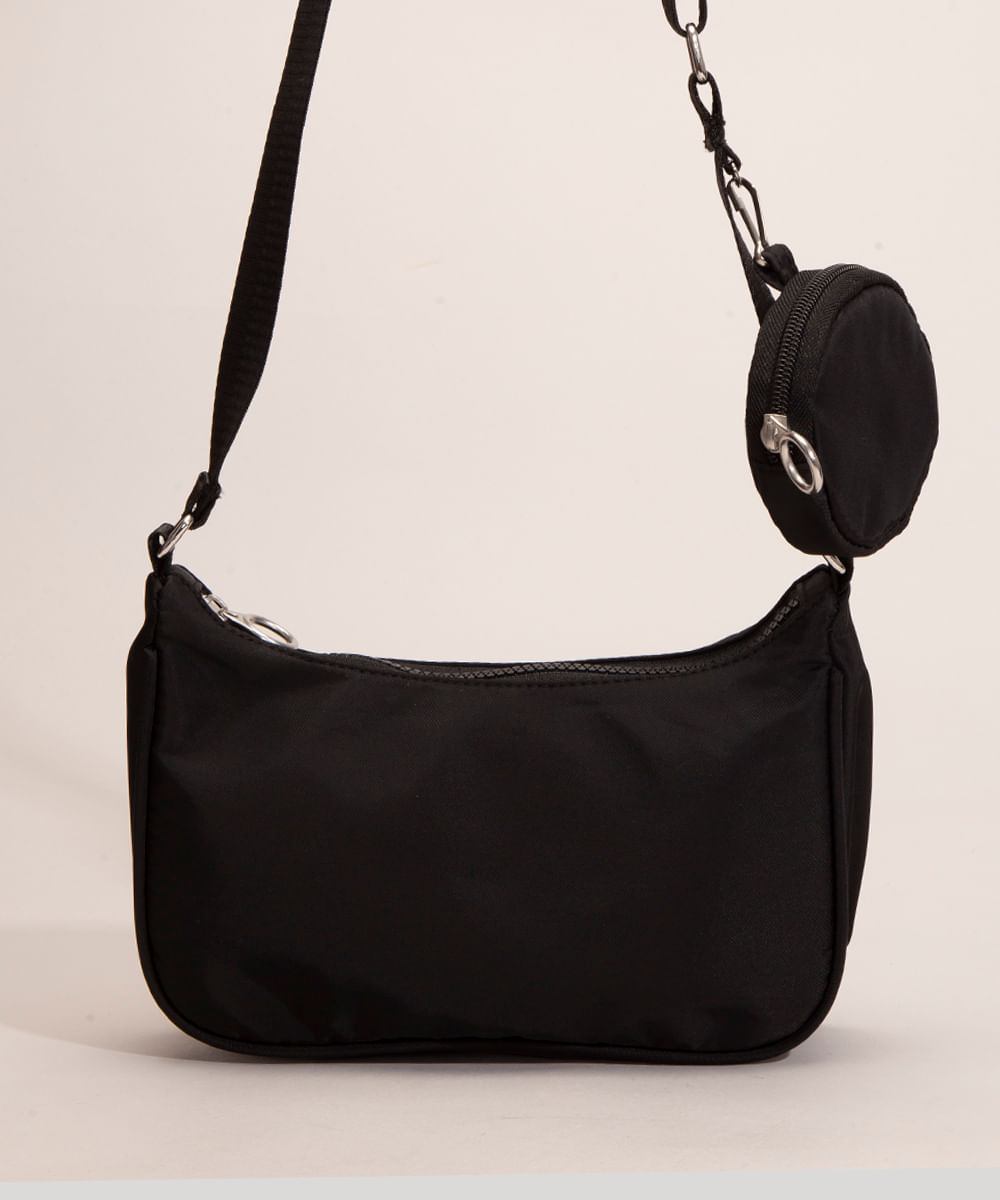 Bolsa feminina desenvolvida em nylon resistente. O modelo é crossbody com tamanho pequeno e acabamentos em vivos. O fechamento é por zíper. Possui uma alça larga com reguladores e chaveiro porta moeda.