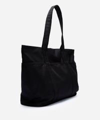 Bolsa feminina confeccionada em tecido encorpado. A peça possui modelo tote, bolsos laterais, compartimentos internos, alças médias, forro, acabamento pespontado e fechamento por botão magnético.