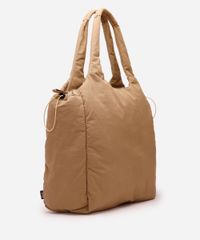 • Modelagem tote ampla, confeccionada em tecido de nylon com enchimento macio.