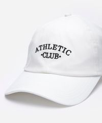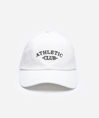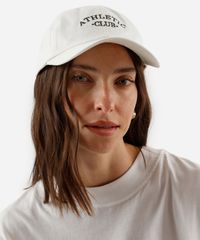 Boné confeccionado em sarja de algodão com bordado localizado escrito "athletic club". O modelo é aba curva, com caimento ajustado, recortes pespontados e ajuste por fivela posterior.