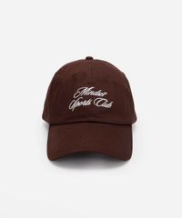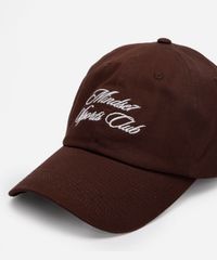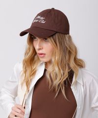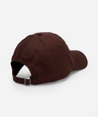 Boné confeccionado em sarja com bordado contrastante. O modelo é aba curva, com caimento ajustado, recortes pespontado e ajuste por fivela posterior.