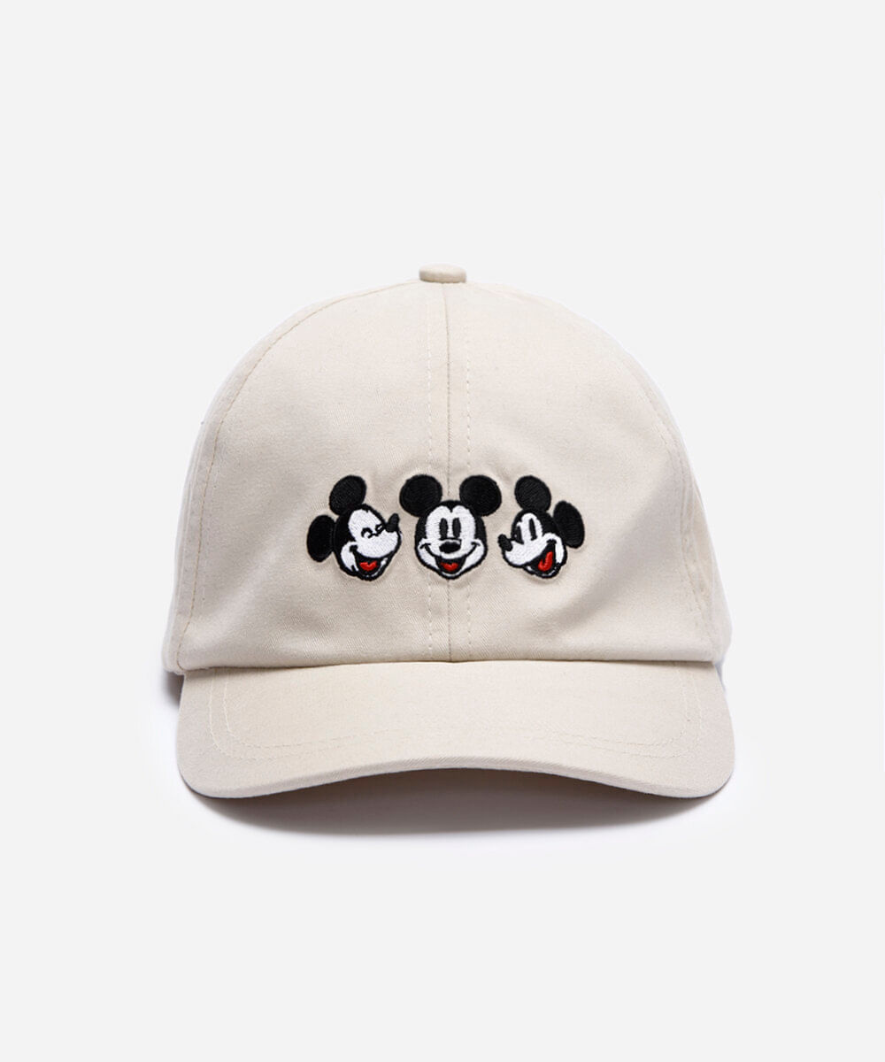 boné aba curva infantil de sarja com bordado mickey bege - UNICO