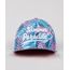 Boné infantil feminino confeccionado em tecido plano. É estampado de folhagem tropical. A parte frontal tem bordado "Summer paradise". A aba é reta. A parte posterior tem tira com níveis de ajuste.