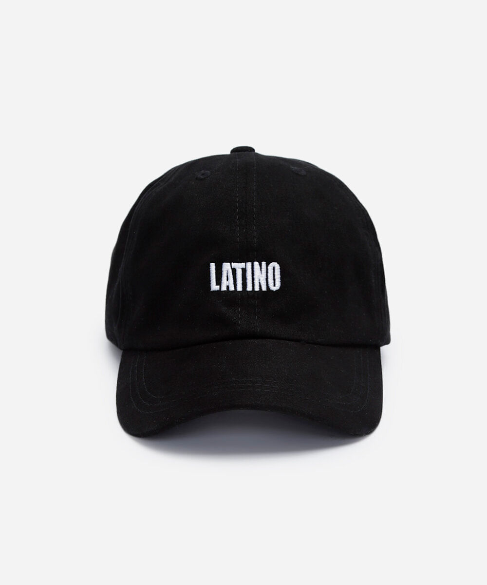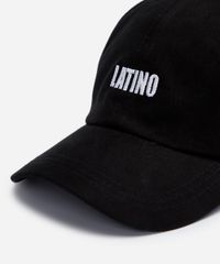 Boné masculino confeccionado em sarja. A peça possui aba curva, bordado frontal com escrita "latino" em cor contrastante, recortes nas laterais, acabamento pespontado e fechamento posterior por strapback.
