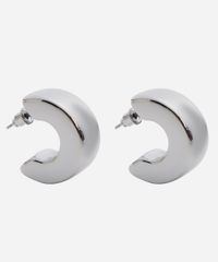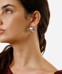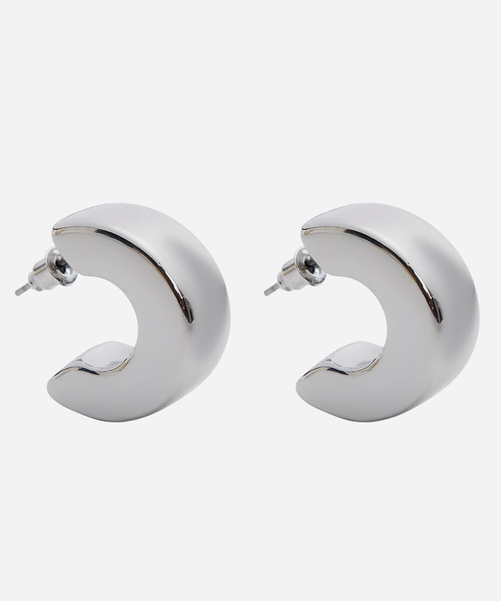 Par de brincos desenvolvido em metal resistente com banho prateado. O modelo tem formato de meia argola grossa e fechamento por tarraxa. Este é um acessório hipoalérgico livre de níquel. Evite contato com água, cosméticos e produtos químicos. Atritos também podem danificar o banho das peças e ao guardar separe as douradas das prateadas.