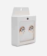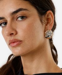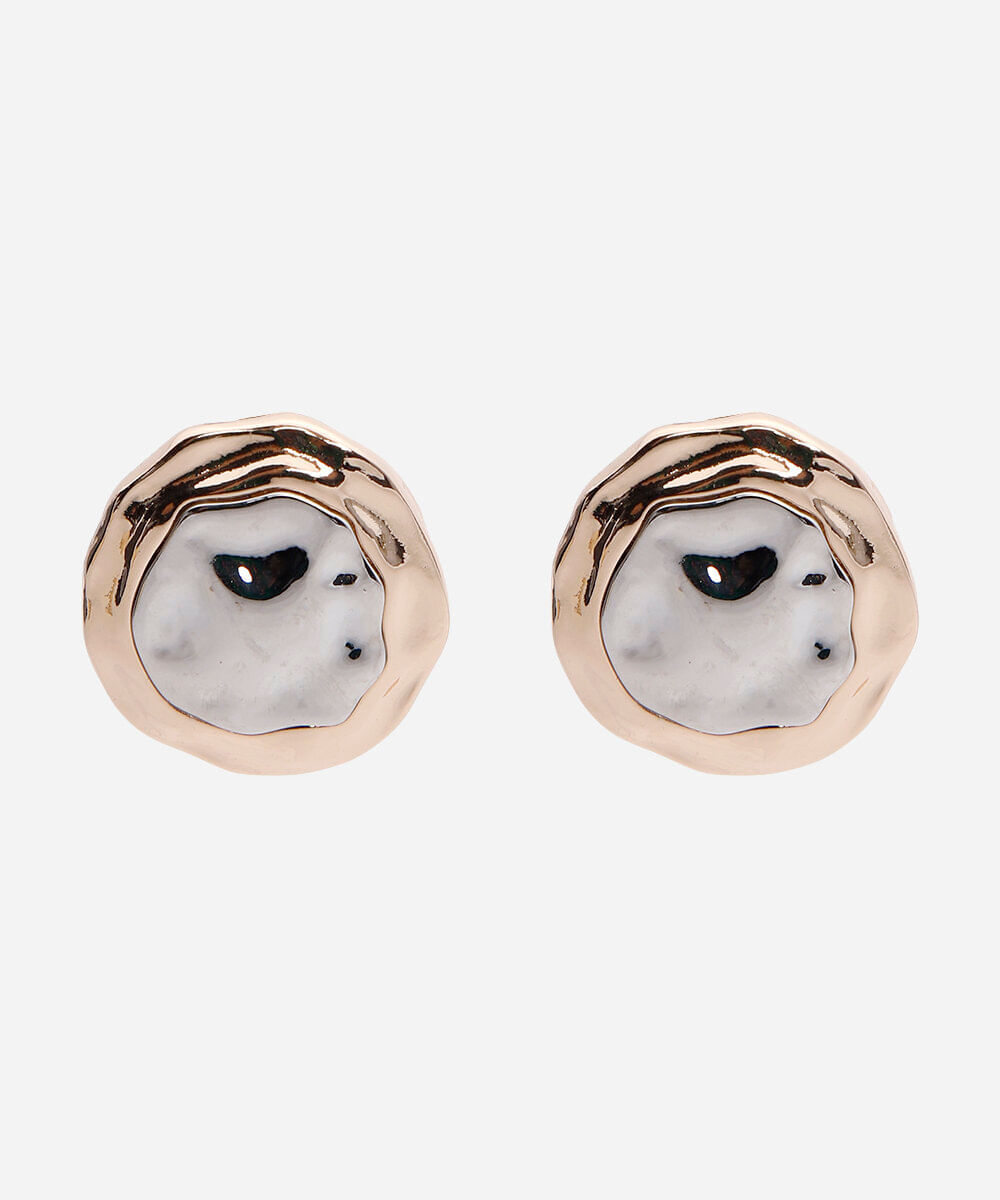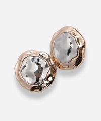 Par de brincos desenvolvido em metal resistente com banho dourado e prateado. O modelo tem formato de botão orgânico texturizado e fechamento por tarraxa garantindo segurança e conforto durante o uso. Este é um acessório hipoalérgico livre de níquel. Evite contato com água, cosméticos e produtos químicos. Atritos também podem danificar o banho das peças e ao guardar separe as douradas das prateadas.