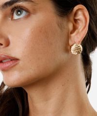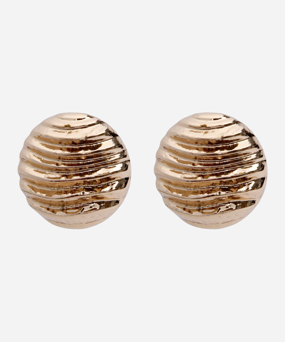 Par de brincos desenvolvido em metal resistente com banho dourado. O modelo tem formato de botão orgânico texturizado e fechamento por encaixe. Este é um acessório hipoalérgico livre de níquel. Evite contato com água, cosméticos e produtos químicos. Atritos também podem danificar o banho das peças e ao guardar separe as douradas das prateadas.