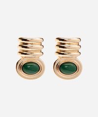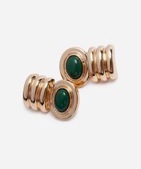 Par de brincos desenvolvido em metal resistente. O modelo tem textura canelada com aplicação de pedraria em resina de tom contrastante. Possui fechamento por tarraxa. Este é um acessório hipoalérgico livre de níquel.