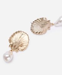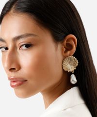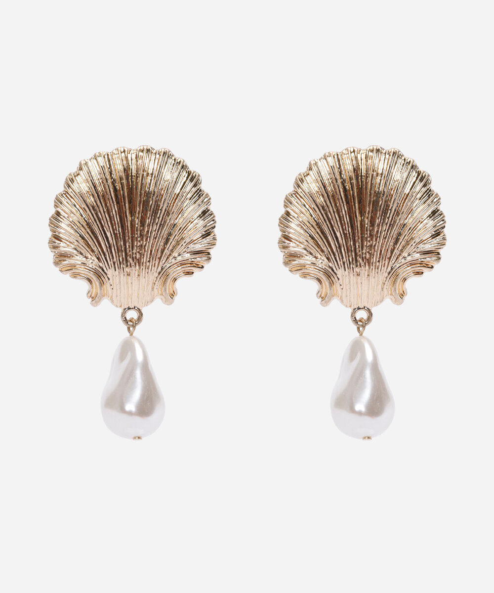 brinco concha com pérola orgânica dourado - UNICO
